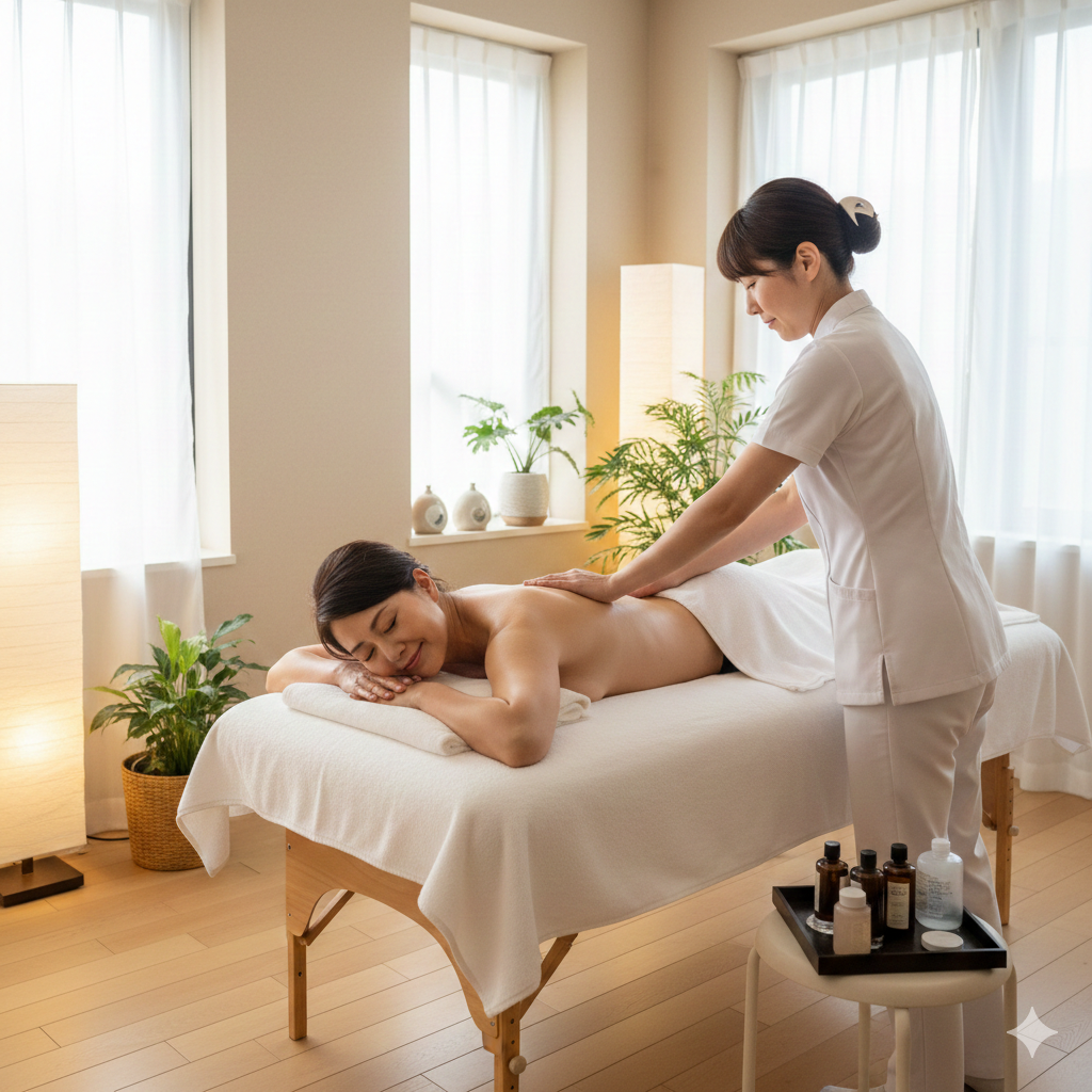 擁有20年經驗的按摩美容師,手法以淋巴排毒結合芳療師嚴選的歐盟認証精油,達到協同作用,療程結束後,可以讓日常累積以久的腰酸背痛、下肢容易水腫的沉重身體,達到舒緩。